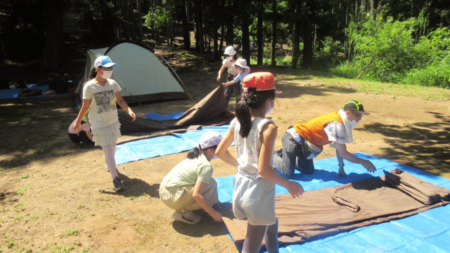 テントのたて方や、道具の使い方などはみんなで練習するので、すぐに覚えられるよ。