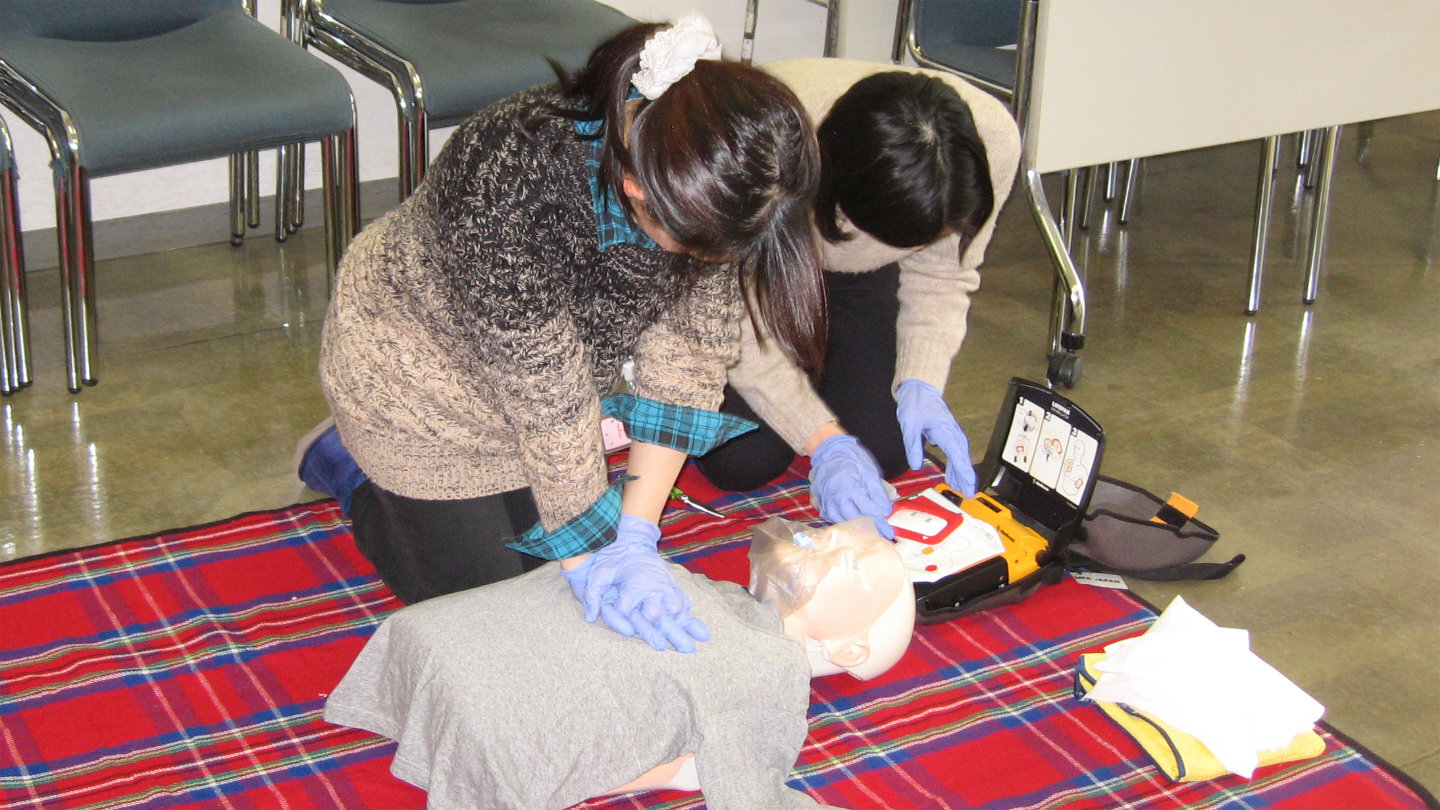 メディック・ファーストエイド(MFA)は、一般の人を対象とした応急救護手当のトレーニングプログラムです。ビデオ教材とスキル練習のサンドイッチ方式の独特な教育手法を用い、CPR, AEDとファーストエイドを体系的に組込んだ、1日で修了できるトレーニング
