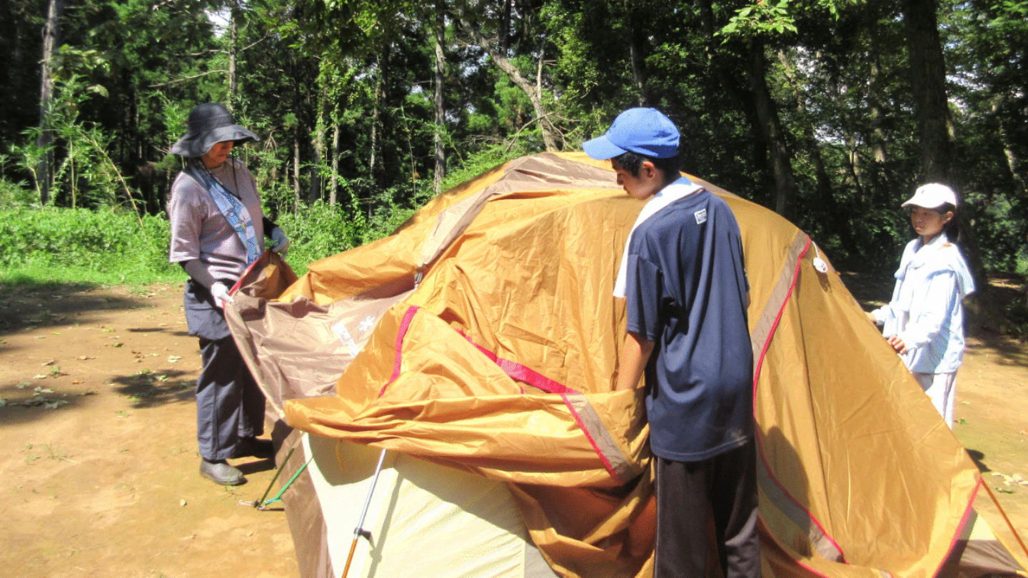 今回の宿泊はテントになりますが、テントのたて方や、道具などの使い方などは、スタッフがわかりやすく説明しますし、お手伝いもしますのでご安心ください。