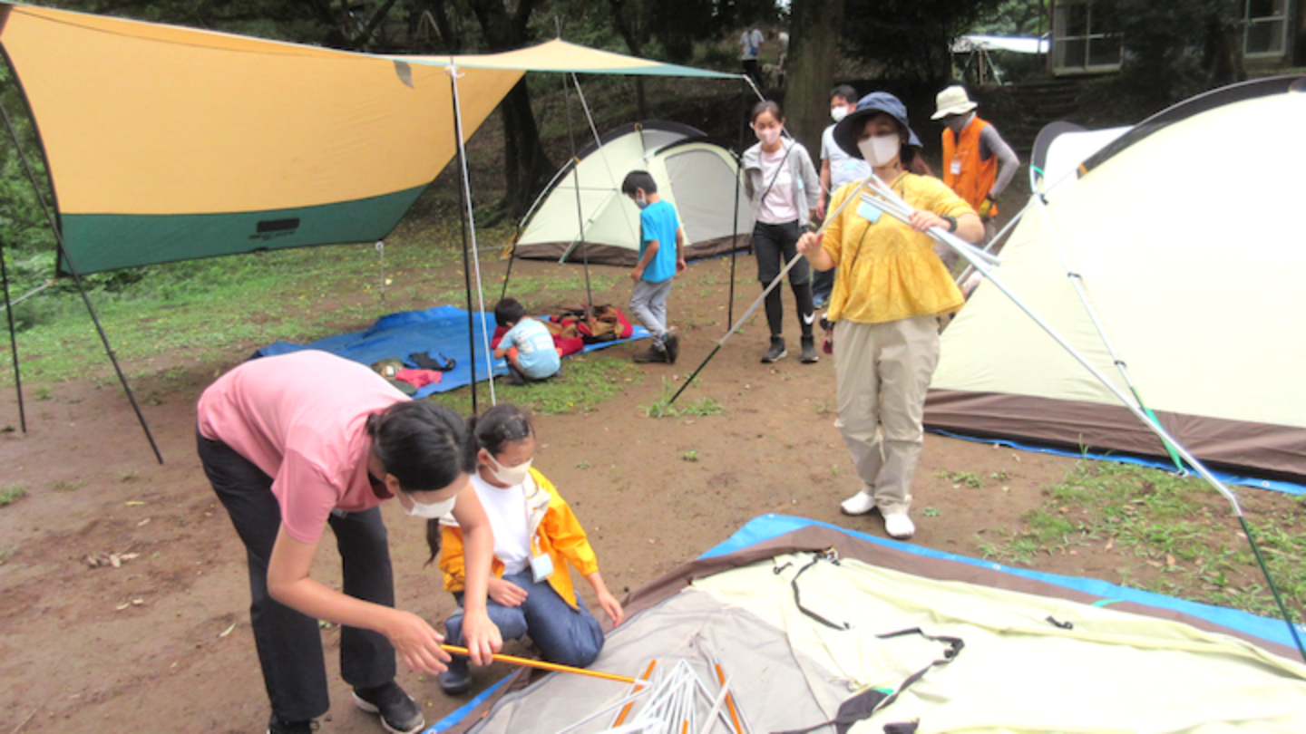 テントは家族ごとに設営するので、家族でうまく役割分担してたてられるとすてきですね。