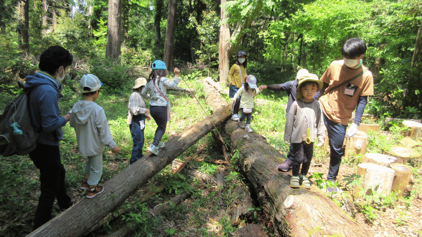 気持ちのよい新緑の中で、里山を探検したり、自然の中であそんだりしてたのしくあそびましょう!